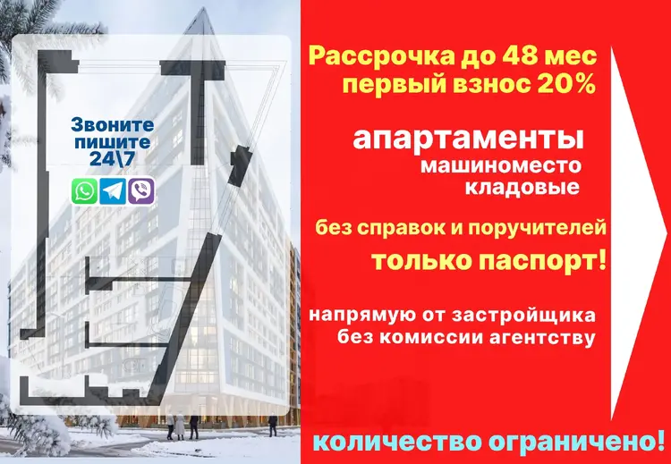 • Возможна покупка апартаментов от застройщика в рассрочку