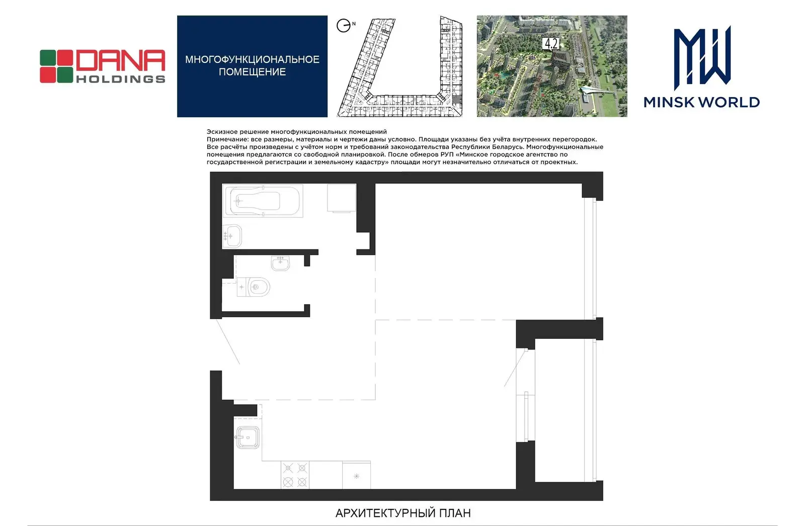 ·  с возможностью устройства двух комнат (42,68−53,13 кв.м.),
