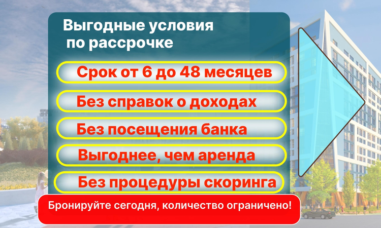 • Возможна покупка апартаментов от застройщика в рассрочку
