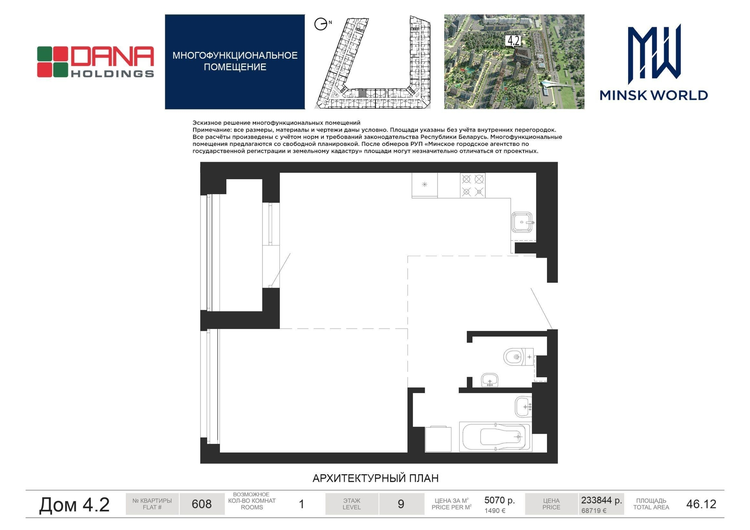 Купить 1-комнатную квартиру в Минске, ул. Николы Теслы, д. 33