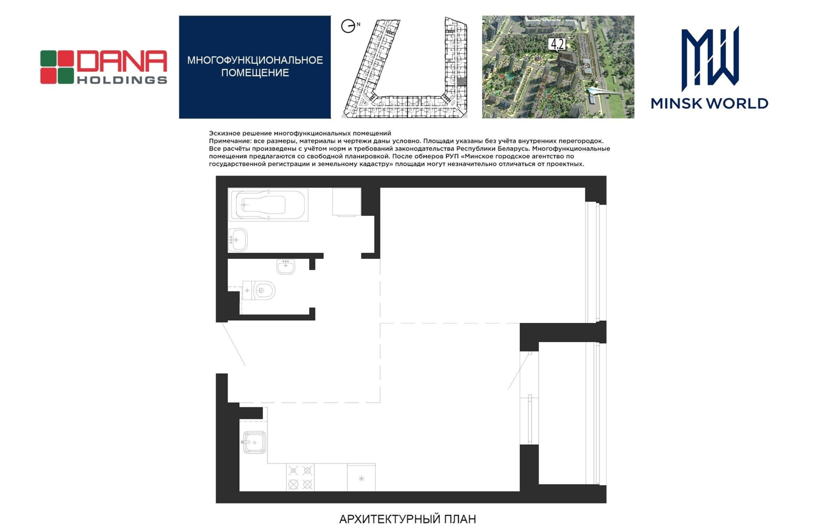 ·  с возможностью устройства двух комнат (42,68−53,13 кв.м.),