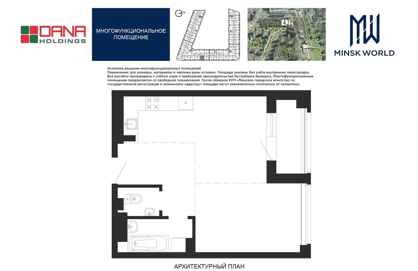·  с возможностью устройства двух комнат (42,68−53,13 кв.м.),