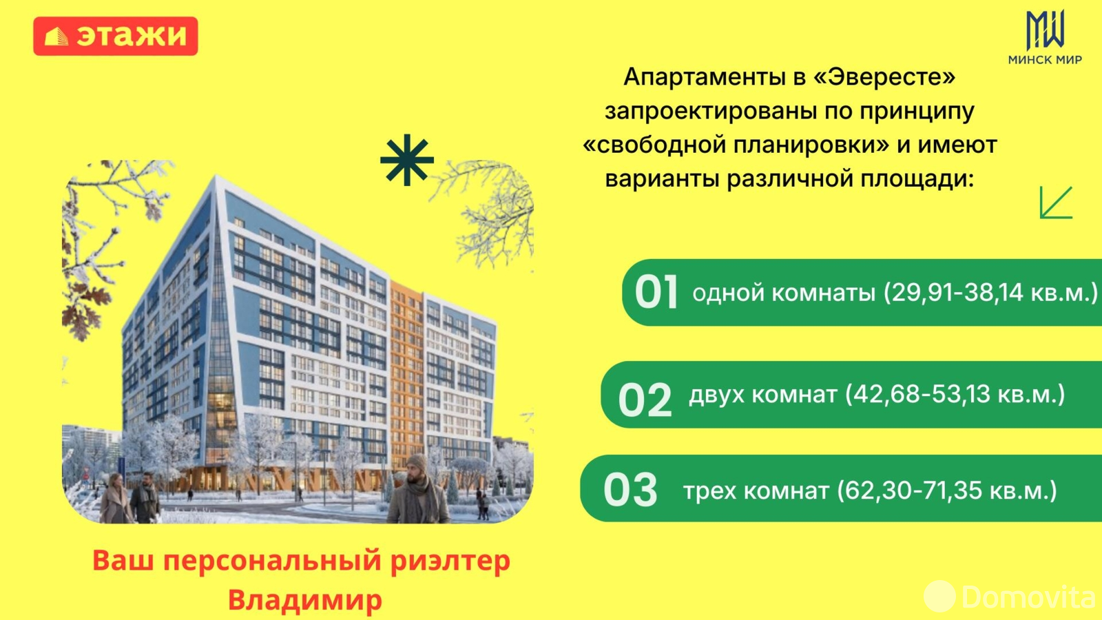 1. Можно заселиться, приобретя апартаменты, зарегистрироваться по месту жительства, а затем, если у вас возникнет желание, произвести регистрацию юридического лица любой формы собственности и открыть свое дело в «Минск-Мире» – одной из выгодных бизнес-локаций.