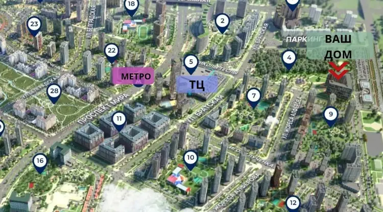 В пешей доступности будет вся собственная инфраструктура Minsk World – взрослая и детская поликлиника, медицинский центр, кафе и магазины, парковки, спортивные залы и фитнес-центры.