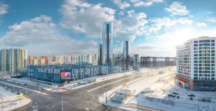 Зеленая парковая зона, международный финансовый центр и крупнейший торговый центр Авиа Молл в центре комплекса.