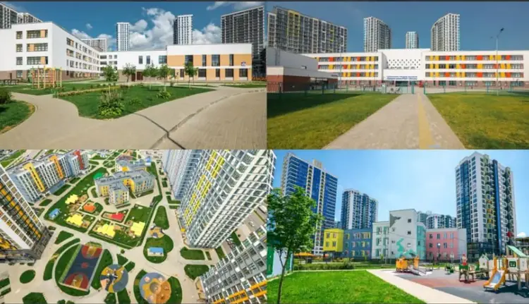 В каждом квартале современные школа или сад с бассейнами и современным оснащением.