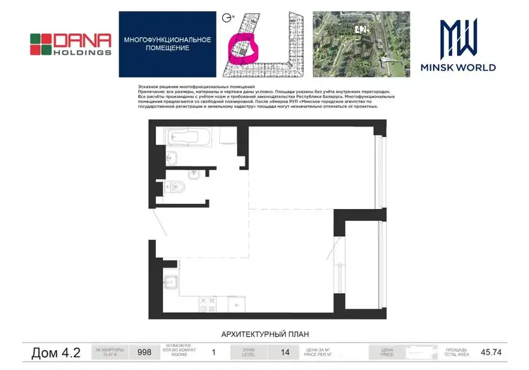 Купить 1-комнатную квартиру в Минске, ул. Николы Теслы, д. 42