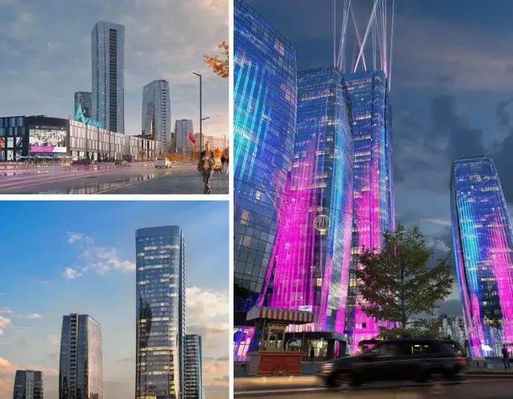 Зеленая парковая зона, международный финансовый центр и крупнейший торговый центр Авиа Молл в центре комплекса.