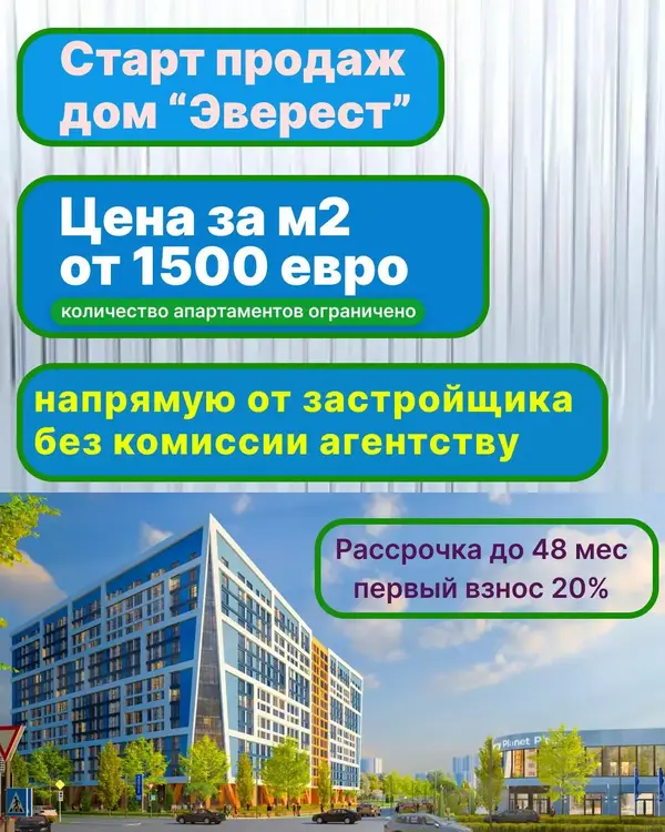 • Возможна покупка апартаментов от застройщика в рассрочку