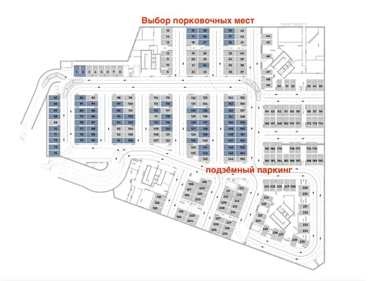 - подземный двухуровневый паркинг на 239 машиномест с зарядными станциями для электромобилей;