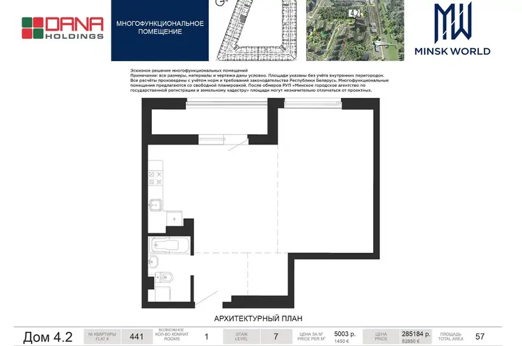 Купить 1-комнатную квартиру в Минске, ул. Николы Теслы, д. 42