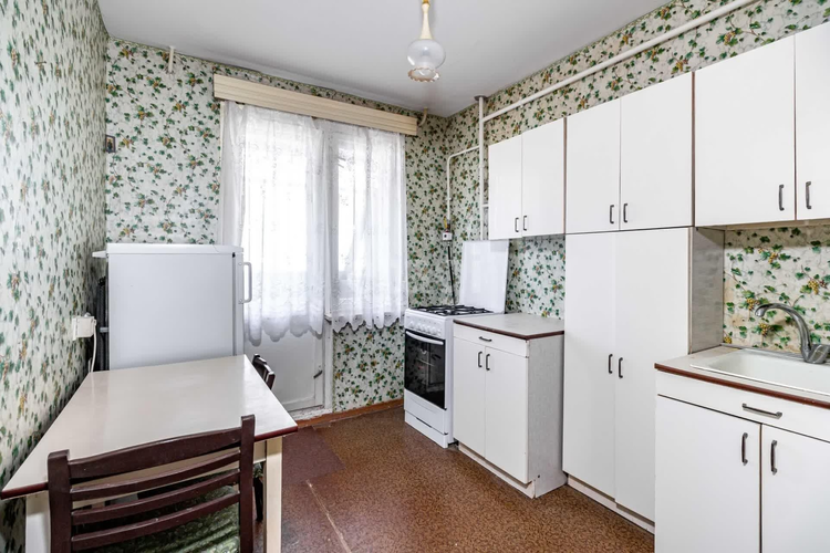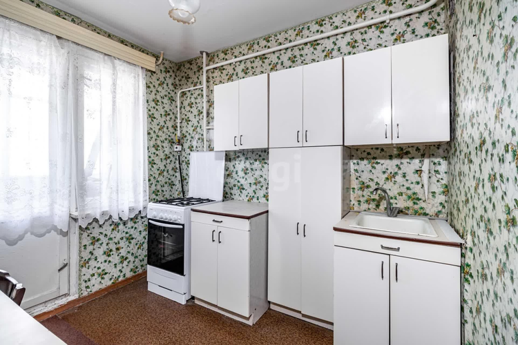 Квартира «брежневской» планировки, общей площадью 34,20 м2, расположена на удобном 2 этаже, с удовлетворительным ремонтом. Состоит из комнаты 17,05 м2, коридора 5,45 м2 со встроенными шкафами для хранения верхней одежды, просторной кухни 7,20 м2, оснащенной газовой плитой. На полах уложен линолеум. На всех окнах установлены деревянные рамы, лоджия застеклена. Санузел раздельный, стены покрашены. Мебель и бытовая техника остаются по договоренности!