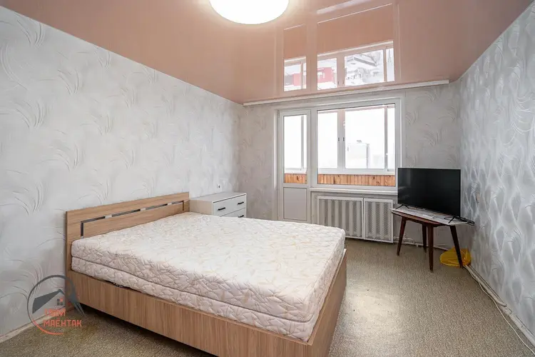 В жилой комнате натяжной потолок. Балкон просторный, застеклён алюминиевыми