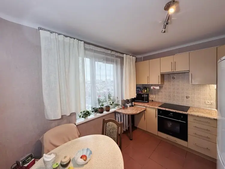 Общая площадь по СНБ: 35.6. кв. м. Жилая площадь 17.85 кв. м., светлая и большая кухня (9.31 кв. м.). Высота потолков 2.5 м.