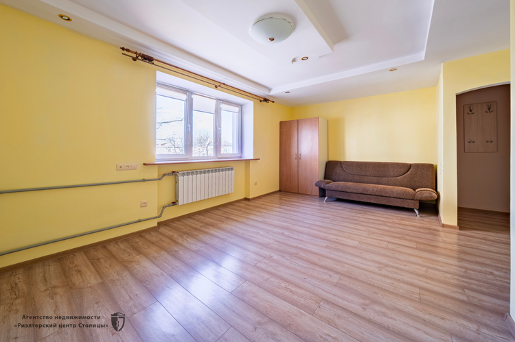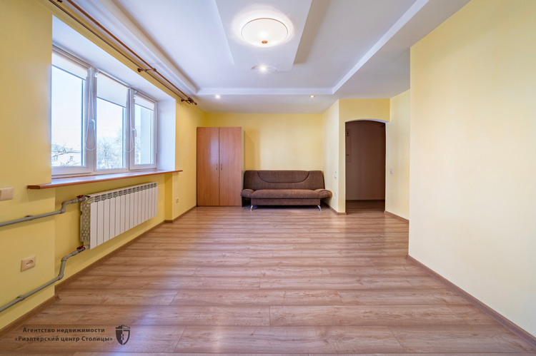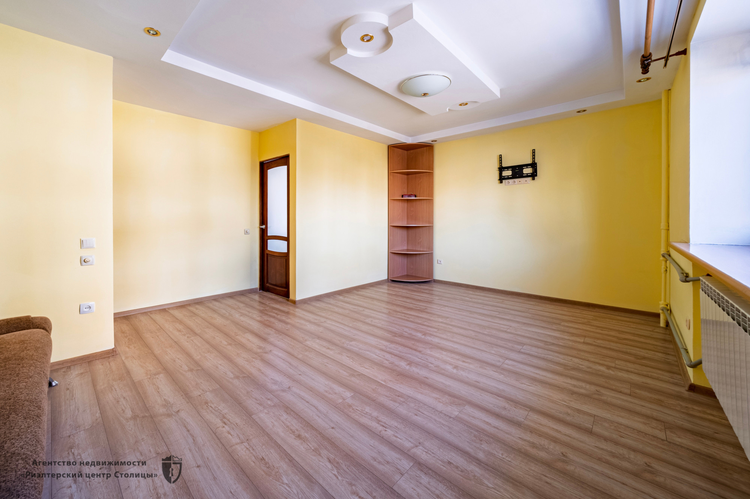 В квартире выполнен свежий ремонт, ламинат, стеклопакеты, толстые стены – отличная шумоизоляция! Окна выходят на торец дома и в тихий двор.