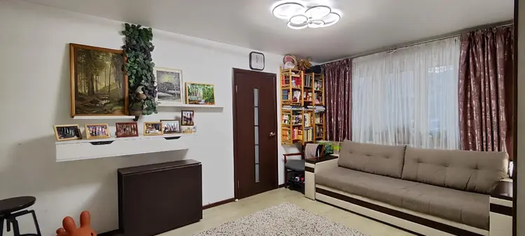 Готовая для жизни: Квартира на 4 этаже в 5-этажном доме. Светлая комната, в комнате два окна, балкон, окна ПВХ, металлическая дверь. Квартира в хорошем состоянии — можно заселяться.