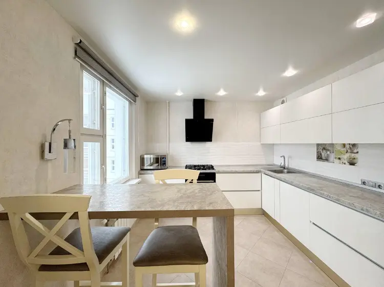 • Кухня 9,2 м2 — это преимущество для однокомнатной квартиры: здесь комфортно принимать гостей, работать за компьютером или готовить.