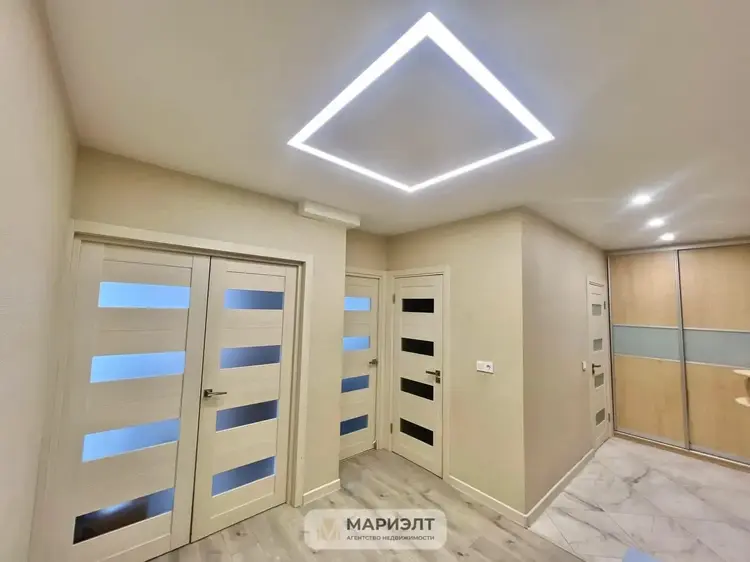 Качественный ремонт: пол – износоустойчивый ламинат высокого класса, с идеальной укладкой; плитка – испанский керамогранит; немецкие натяжные потолки. Свет с управлением.