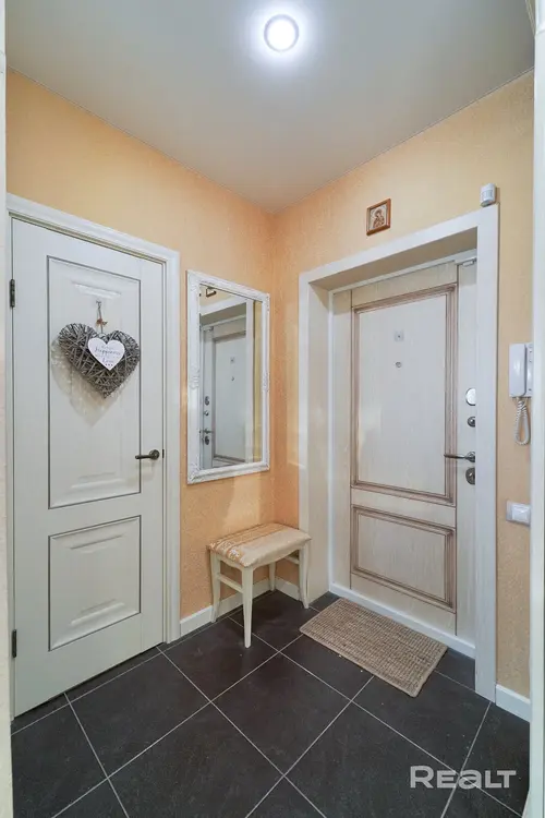 Квартира в уникальном месте на берегу Свислочи. С одной стороны набережная с уютной аллей, дамбой, а на другой стороне настоящий Манхэттен, украшенный ночными фонарями и чарующей подсветкой. На набережной прекрасно можно прогуляться или гулять с коляской, устроить пикник, приготовить шашлык на мангале и даже порыбачить. Прекрасное транспортное сообщение, остановка в трех минутах от дома, четыре остановки и вы уже в центре Минска, для владельцев авто - настоящий рай - несколько парковок: двухъярусная парковка возле дома, вдоль дома а также можно поставить авто прямо под камерами наблюдениями у Ленинского исполкома. Пять минут и вы в центре, десять и вы уже на кольцевой. Рядом с домой два больших торговых центра: Коронасити и Червенский, несколько медицинских центров. Хозяйка квартиры с душой и любовью продумала все до мелочей. Грамотная планировка позволила квартире стать еще светлее и просторнее. Входная дверь выполнена на заказ, такой точно нет больше ни у кого. Светлая с двух сторон, в патине. Установлена охранная сигнализация. Светлая, уютная квартира, выполненная в классическом стиле, что никогда не надоест и не выйдет из моды. Светлая мебель из массива с бронзовой фурнитурой. Шкаф в прихожей дополнительно переоборудован для максимально удобного хранения. Плитка в прихожей испанского производителя - шоколадного цвета - скроет все прорехи плохой погоды, если вдруг по дороге домой вы зачерпнули гость песка или соли. Совмещенный санузел очень просторный, роскошный по размеру для однокомнатной квартиры. На стенах и полу плитка от Сквирел. Мебель в ванной с максимальным функционалом. Стиральный машинка LG, осенью проводился fullсервис. Все смесители от Grohe. Кухня в стиле прованс, верхние шкафы до потолка, что позволит уместить все необходимое для создание ваших кулинарных шедевров. Испанская плитка с декорами особенно подчеркивает красоту кухни, все ящики на доводчиках. Уютная гардеробная, в которой задействован для хранения каждый сантиметр, умная система хранения, которая позволяет вместить гардероб даже самой страстной модницы. Двери МДФ с лаконичными ручками в стиле Прованс. И главный бриллиант этой квартиры - это лоджия площадью 8,4м2.который выходит на солнечную сторону. На лоджии заменены семь французских окон, поставлен усиленный профиль и петли, теплый пол с регулятором включения. Это полноценная жилая комната, которую можно оборудовать под спальню. На отоплении стоят счетчики, на батареях регуляторы тепла, что позволит вам регулировать комфортную температуру и не переплачивать за коммунальные услуги. Умная планировка электрики, все выведено на отдельный автомат. Все розетки и включатели от надежного французкого производителя Legrand. Люстры привезенные под заказ из Европы. В этой квартире царит особая атмосфера и энергетика.