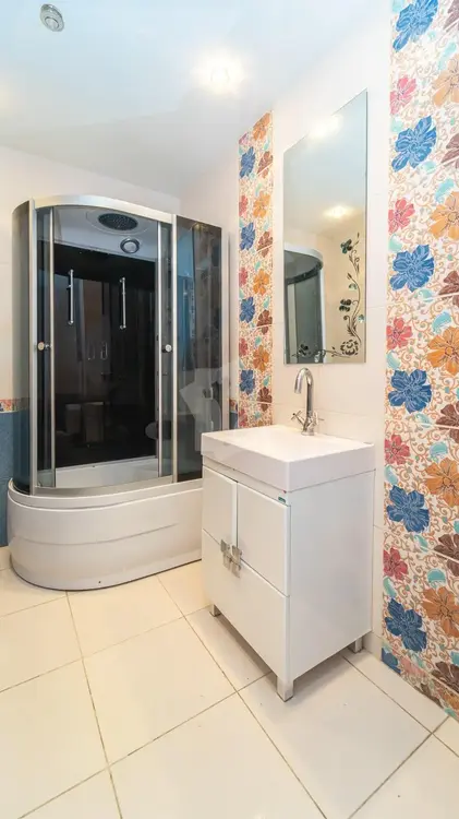 • В квартире совмещенный сан.узел. Стены и пол в ванной комнате и туалете облицованы плиткой.