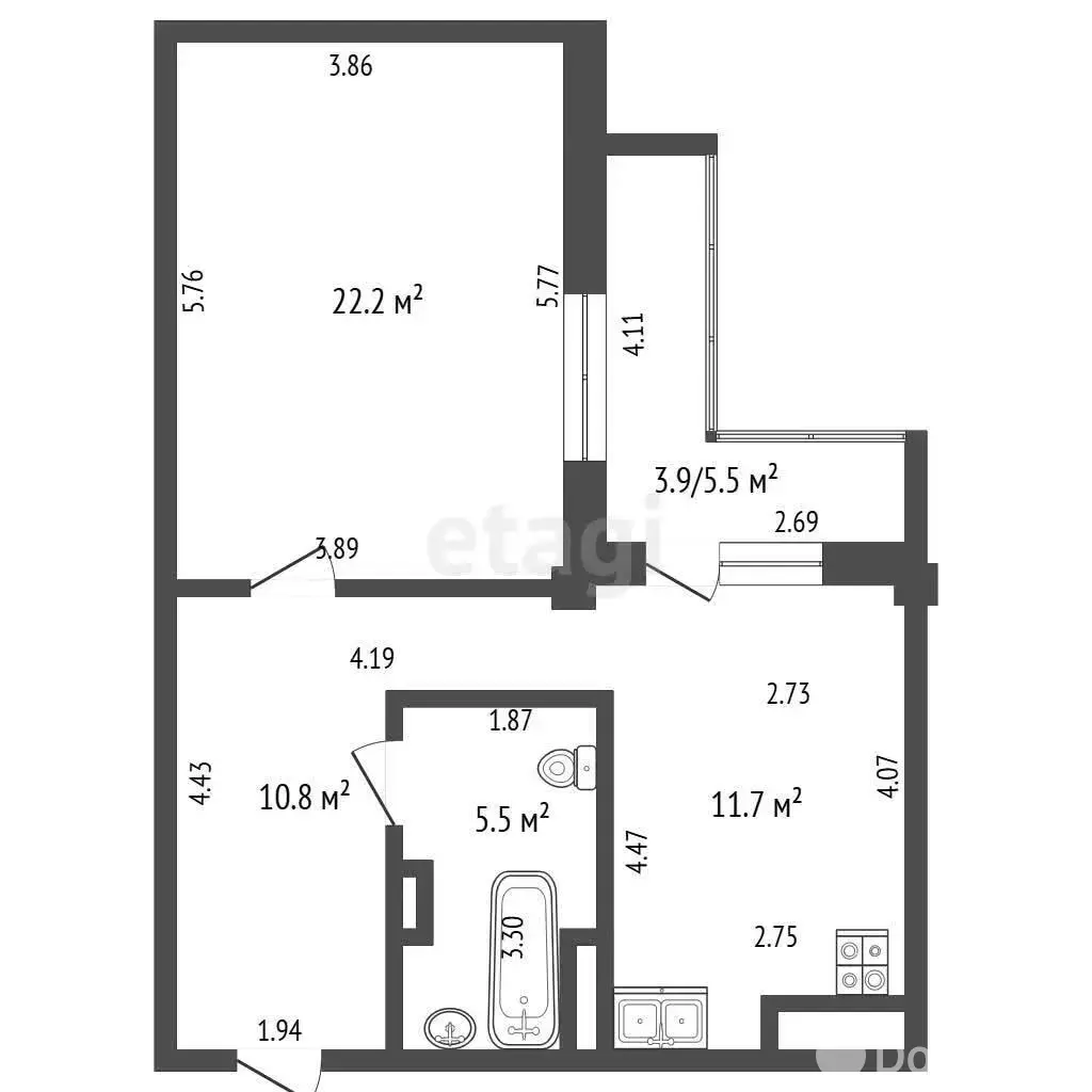 22.2 м2