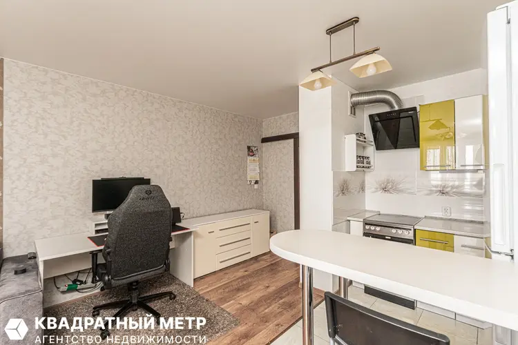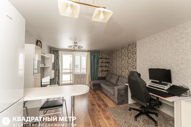 1. Просторная аккуратная, наполненная светом квартира формата Студия: мебель, ТВ-зона и большой встроенный шкаф. Полы в ванной, на кухне и прихожей оборудованы подогревом.