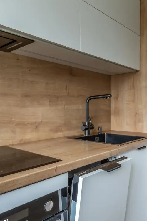 - Стены покрыты венецианской штукатуркой, обои под покраску