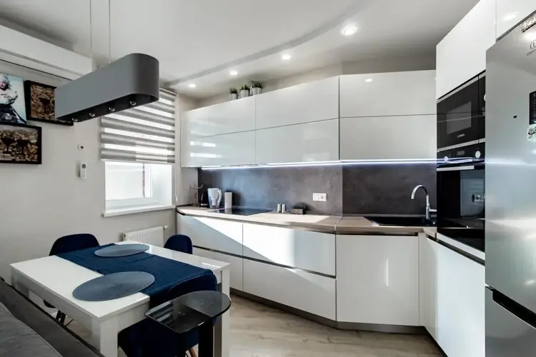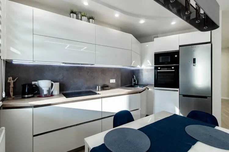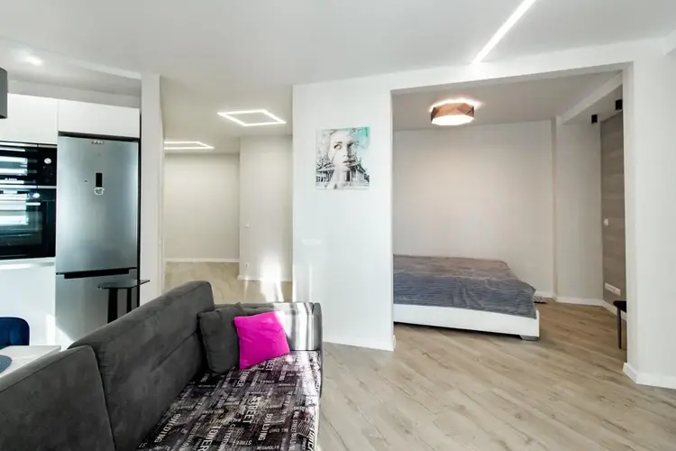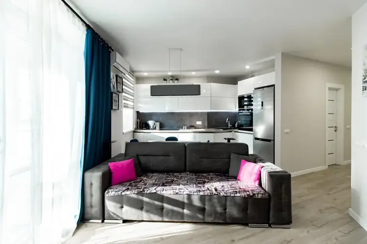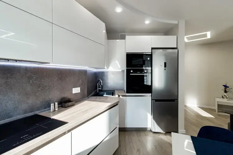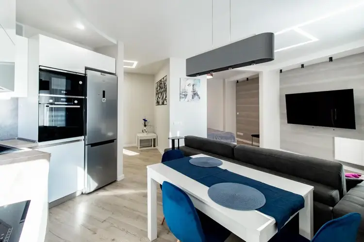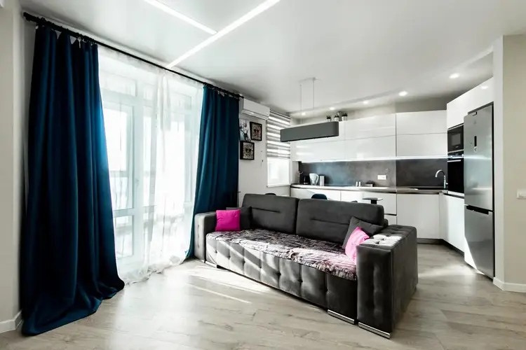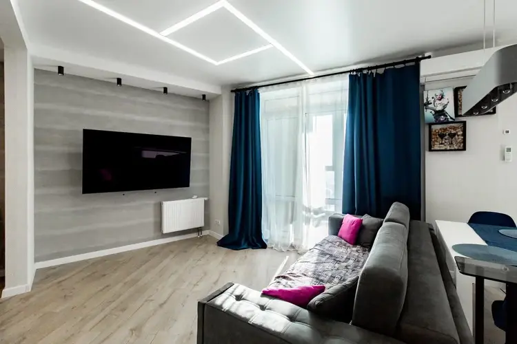 В отделке и наполнении квартиры были использованы качественные современные материалы, техника, оборудование. Ремонт, мебель, техника в отличном состоянии! Полы – ламинат Quick Step,плитка. Встроенная кухня пр-ва Мебельхолл оборудована вытяжкой, духовым шкафом, посудомоечной машиной, варочной панелью,печью СВЧ. Все пр-во Bosch. Холодильник Indesit. В гостиной установлен кондиционер. В ванной комнате - бойлер. Дизайнерская разработка освещения квартиры.
