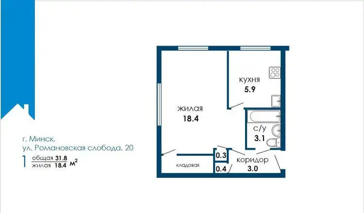 Продается однокомнатная квартира на улице Романовская слобода 20.