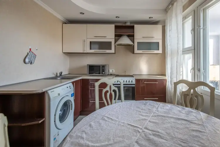 В жилой комнате уложен линолеум, на кухне — плитка. Квартира продается с мебелью и техникой: остаются холодильник, электроплита, стиральная машина- в общем, все что есть на фото, это позволит сразу заехать и жить без дополнительных вложений.
