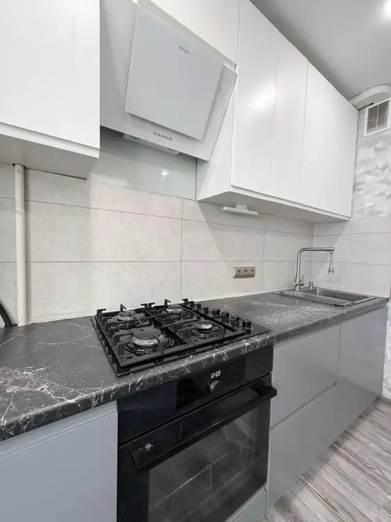 Встроенная кухня со встроенной техникой. Шкафчики все на хороших доводчиках. Встроенная мойка с отделом для мытья фруктов. Качественный смеситель с отдельным краником для питьевой воды. Установлен фильтр для очистки питьевой воды.