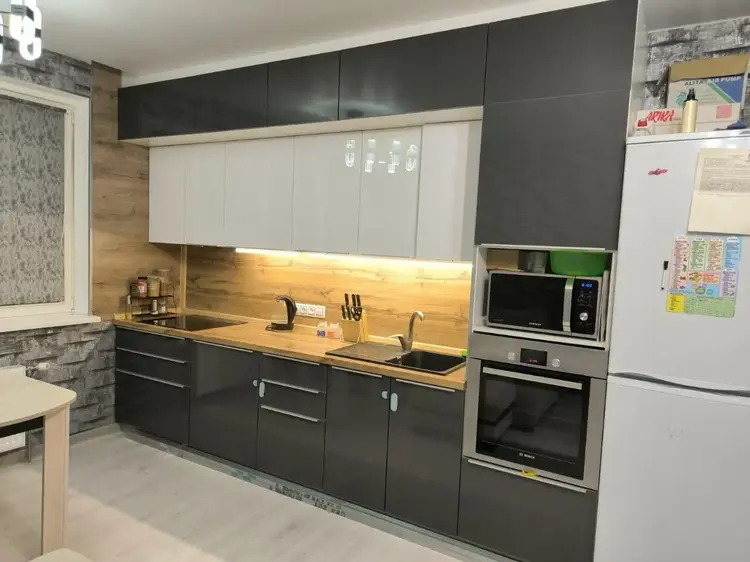 Квартира полностью готова к заселению: современный ремонт с использованием импортных материалов, новая мебель, встроенные шкафы, кухонный гарнитур с техникой.