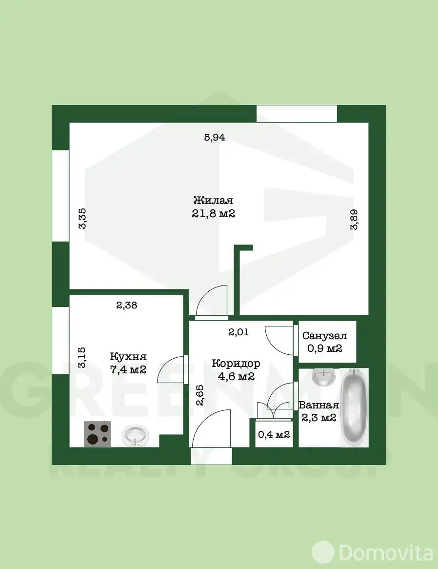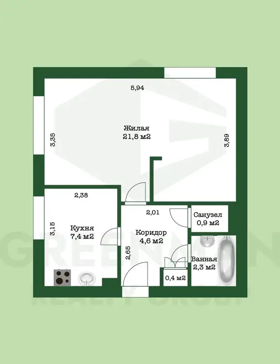 - Общая: 37,1 м. кв.