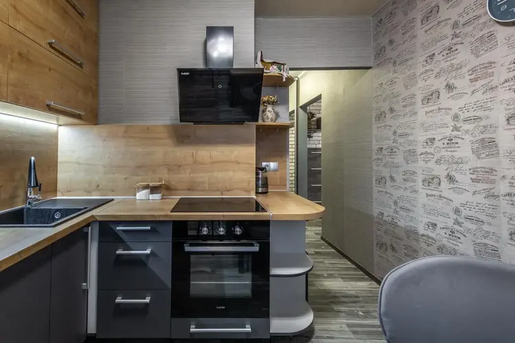 Встроенная техника именитых производителей. Индукционная варочная поверхность. Мойка из искусственного камня. Удобный гибкий смеситель.