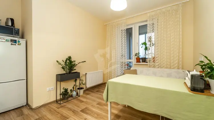Расположение квартиры крайне удобное: в шаговой доступности находятся детский сад, школа, поликлиники и магазины, что делает жизнь здесь комфортной и беззаботной. В шаговой доступности магазины ГИППО и ЕВРООПТ, пункты выдачи Ozon и Wildberries, спортивный комплекс Мандарин. Отличное транспортное сообщение и удобный выезд на МКАД обеспечат легкий доступ к любым районам города.