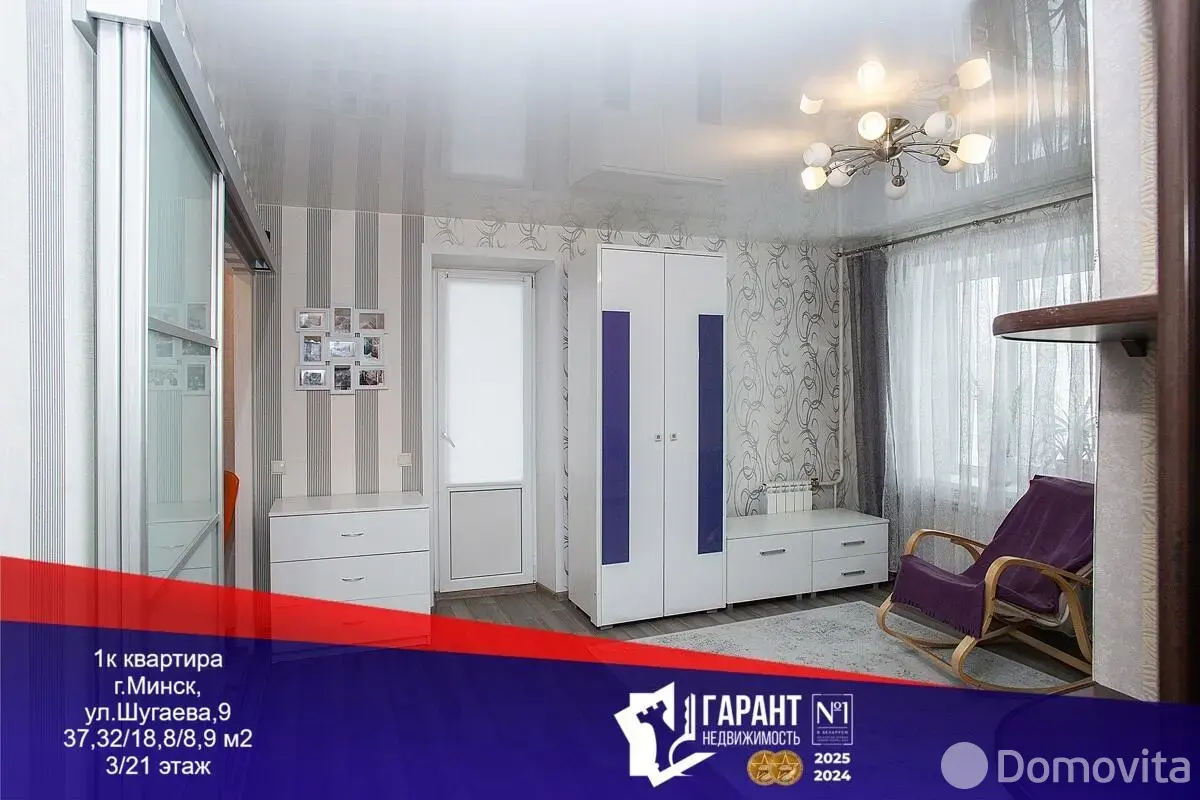 Продаётся просторная 1-комнатная квартира, Шугаева, 9.