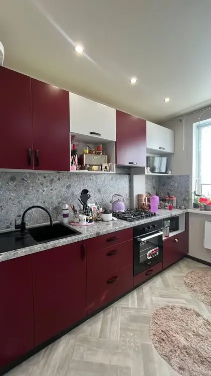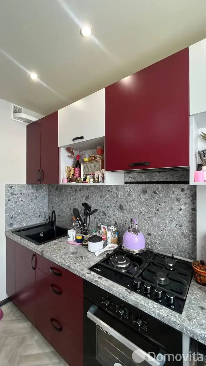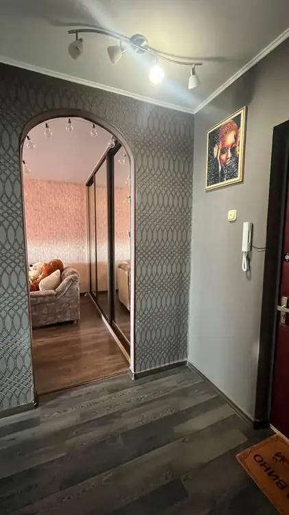 Установлены окна ПВХ, встроенный шкаф, кухня оборудована варочной газовой панелью и электрическим духовым шкафом. Напольное покрытие: в комнате и коридоре – ламинат, кухне – линолеум, ванной – плитка.