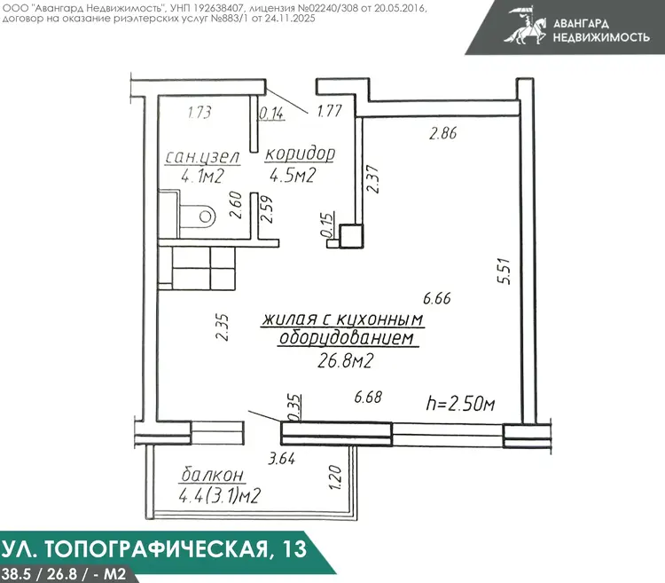 - Общая площадь составляет 38,5/26,8/--. Квартира расположена на 13 этаже 18-ти этажного каркасно-блочного дома 2016 года постройки. 2 лифта. По периметру дома установлена система видеонаблюдения. Чистый и аккуратный подъезд. Интеллигентные соседи.