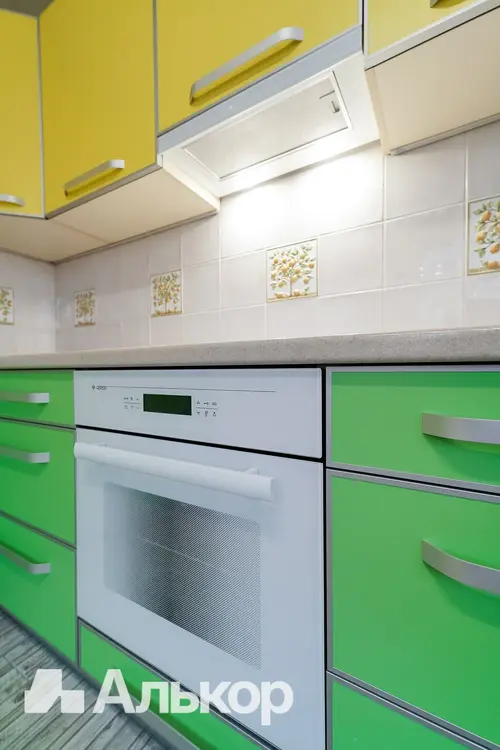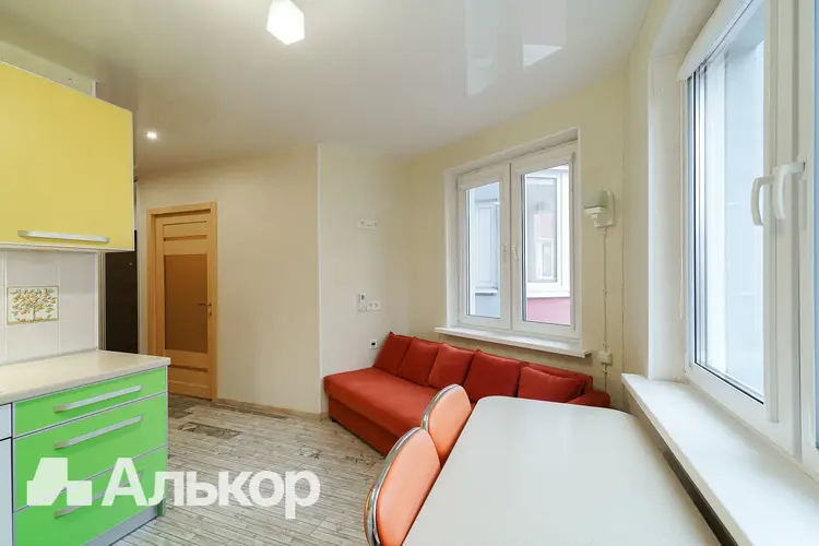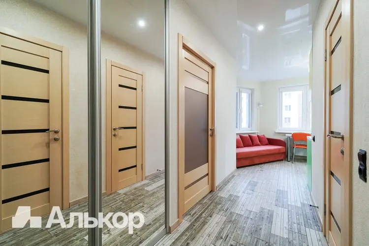 В квартире установлена входная металлическая дверь, межкомнатные двери - шпонированный массив. В оконных проёмах стеклопакеты с профилем из ПВХ, в том числе остекление балкона. Южная сторона выхода окон, квартира светлая и теплая. Французское окно в комнате визуально расширяет пространство, наполняет комнату светом и придает ей современный вид. Кассетные рольшторы на окнах кухни и на балконе. Напольное покрытие: керамическая плитка в коридоре и на кухне, ламинат в жилой комнате. Теплый пол в зоне приготовления на кухне. Горизонтальная разводка отопления, эффект теплого пола по всей квартире. Встроенная кухонная мебель с доводчиками Blum укомплектована бытовой техникой, включая посудомоечную машину. Имеется кондиционер, бойлер. Разводка электрики под евростандарты и созданное планировочное пространство. Декоративная штукатурка на стенах в жилой комнате, жидкие обои на кухне и в коридоре. Натяжные потолки по всей квартире. Раздельный санузел. В санузле плитка современного дизайна, скрытый люк для доступа к коммуникациям, организованное пространство для хранения за сантехнической роллетой. Длинная ванна для любителей релакса, стиральная машина с вертикальной загрузкой.