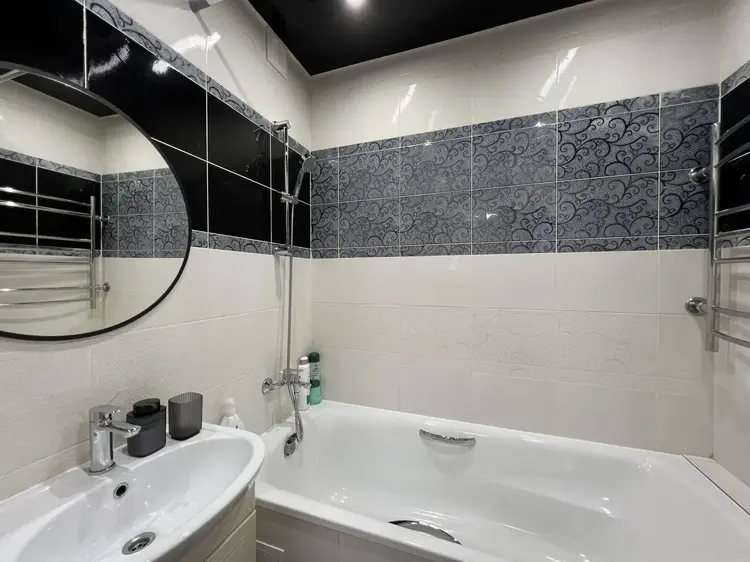 Ванная комната также оснащена современной сантехникой. В ней достаточно места для хранения необходимых принадлежностей.