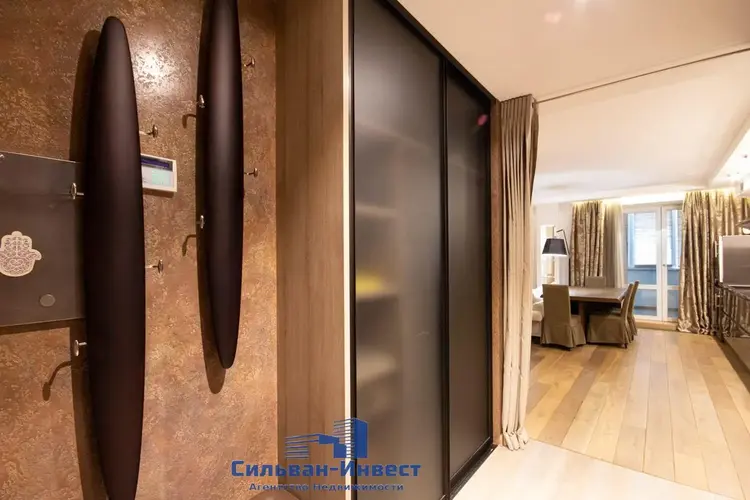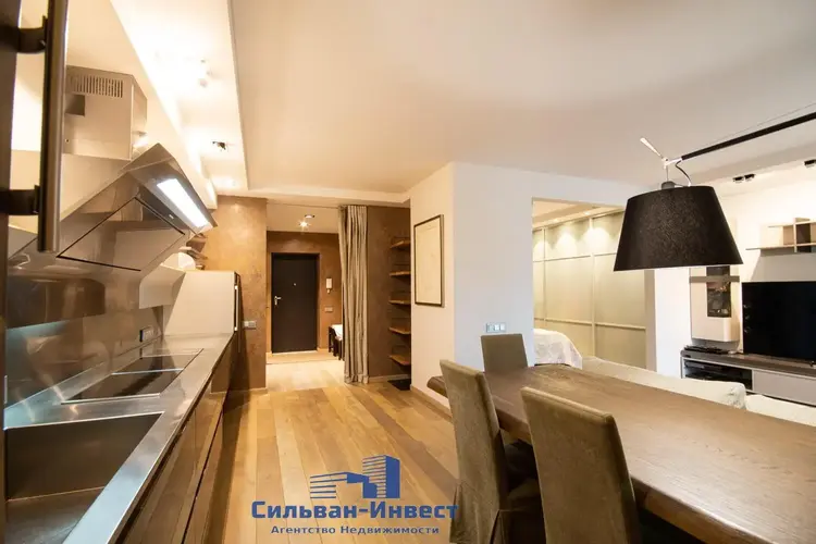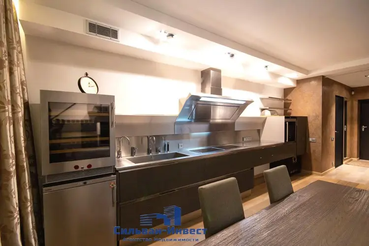 Дизайнерский ремонт в квартире произведен с использованием импортных материалов самого высокого качества и максимально возможной экологичностью. Установлена система приточно-вытяжной вентиляции с рекуперацией, тонированные энергосберегающие панорамные стеклопакеты, напольные стальные радиаторы отопления и система труб Kan Германия, сигнализация, видеодомофон, бойлер производства Италия. Полы - дубовый паркет, плитка с подогревом производства Италия. Дизайнерская мебель, свет и кухонный гарнитур также производства Италия. Премиальная бытовая техника Liebherr(холодильник, морозильник винный шкаф), варочная панель Kuppersbusch, стиральная и сушильные машины Miele.
