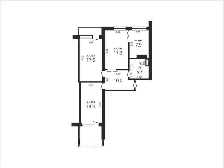 Продуманная планировка, в которой гостевая зона и сан. узел расположены ближе к входу, а зона спальни в глубине квартиры.