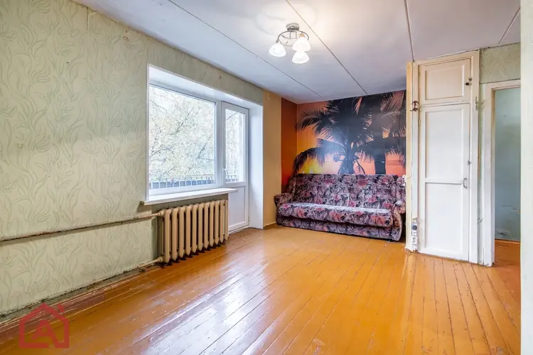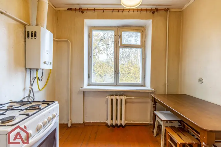 О квартире: 1-комнатная квартира с площадью по СНБ 32,42 м2.. Квартира в жилом состоянии с косметическим ремонтом. Жилая площадь представлена одной изолированной комнатой 17,10м. Кухня 6,04 м 2 правильной квадратной формы. На полу – доска, стены оклеены обоями, окно в кухне-деревянное, входная группа на балкон-стеклопакет. Санузел совмещённый.