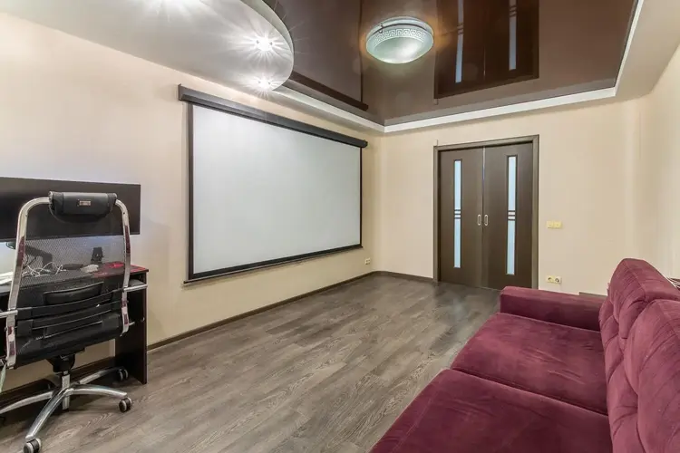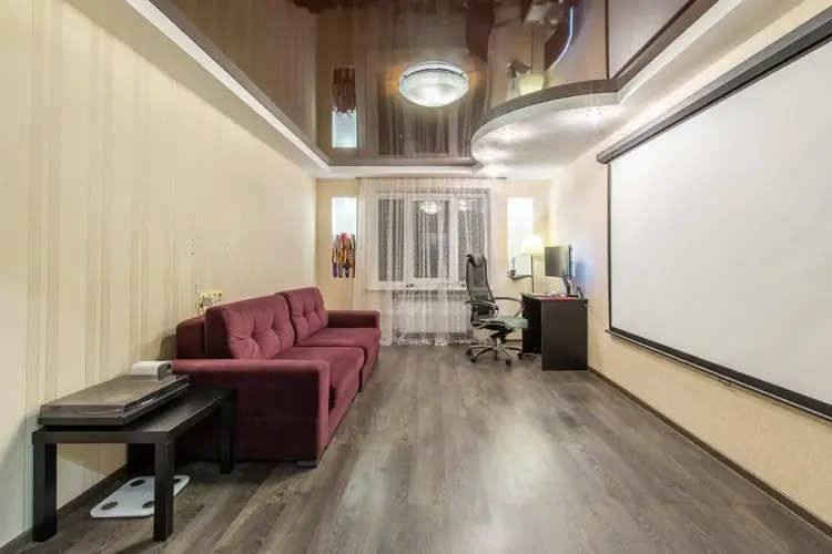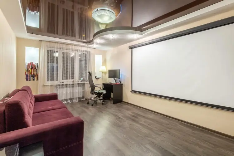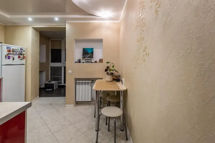 Квартира имеет грамотное планирование и панорамный вид, что создаёт ощущение простора. Площадь кухни 9 м2, есть застеклённая и утеплённая лоджия с подогревом пола. Напольное покрытие выполнено из качественного ламината и плитки.