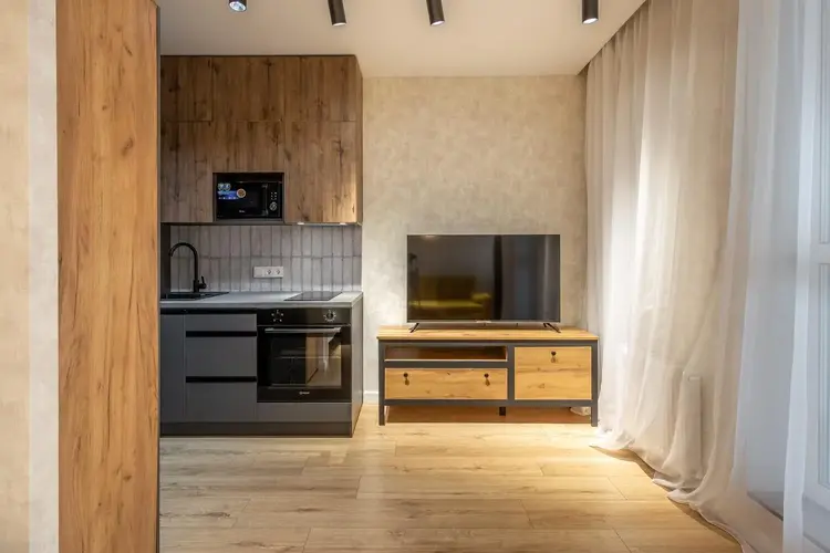 В ней есть все для того, чтобы обеспечить комфортное проживание: кухня со встроенной бытовой техникой, огромная система для хранения Ваших вещей, а также просторная ванна является незаменимым преимуществом. В отличие от душа Вы сможете расслабиться в полной мере после напряженного рабочего дня.