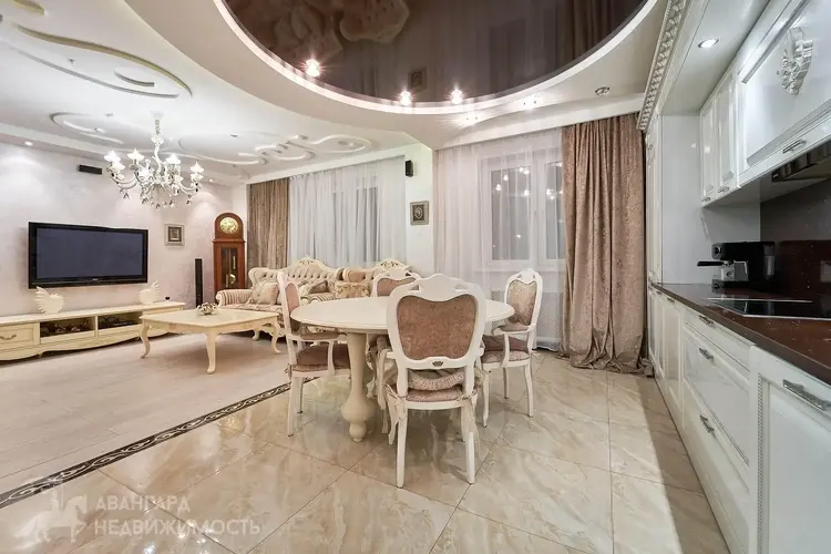 В отделке и наполнении квартиры использовались высококачественные современные материалы, техника, оборудование. Ремонт, мебель, техника в отличном состоянии. Встроенная кухня из массива (столешница и фартук камень) оборудована духовым шкафом, холодильником, посудомоечной машиной, варочной поверхностью, вытяжкой, фильтром для воды и множеством мест хранения. Полы ламинат 33 класс и итальянская плитка (все полы в зоне плитки с электрическим подогревом). Стены – декоративная штукатурка. В санузлах итальянская плитка, сантехника, смесители немецкие. Межкомнатные двери массив. Большинство мебели из массива индивидуально под заказ. Свет итальянский. Шторы из натурального шелка (Италия) под заказ. Большой встроенный шкаф в коридоре, вместительный гардероб в спальне с встроенной системой хранения. Лоджия застеклена, утеплена и облагорожена.
