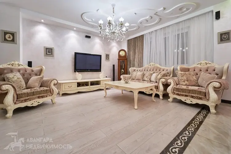 Квартира изначально имела свободную планировку. Действующая планировка, а также весь ремонт, мебель и техника, подбирались в один общий стиль в соответствии с дизайн-проектом. Все продумывалось до мелочей. Как итог вы имеете просторную кухню-гостиную и большую мастер-спальню с собственным с/у и гардеробной. В целом размеры всех помещений в квартире действительно впечатляют. Высота потолков – 2.73 метра.