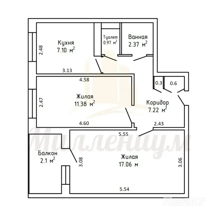 Классическая и правильная планировка: комфортно для семьи, удобно для аренды.