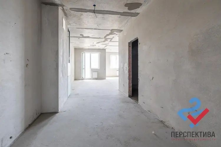 - Отделка: Выполнена стяжка пола, выровнены стены, разведена электрика с установленными розетками и выключателями.