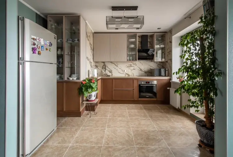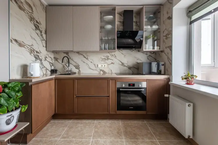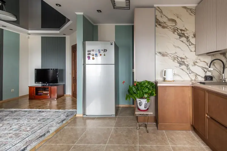 - Современные отделочные материалы: потолок из гипсокартона, качественные натяжные потолки, практичное напольное покрытие (плитка, кварц-винил).